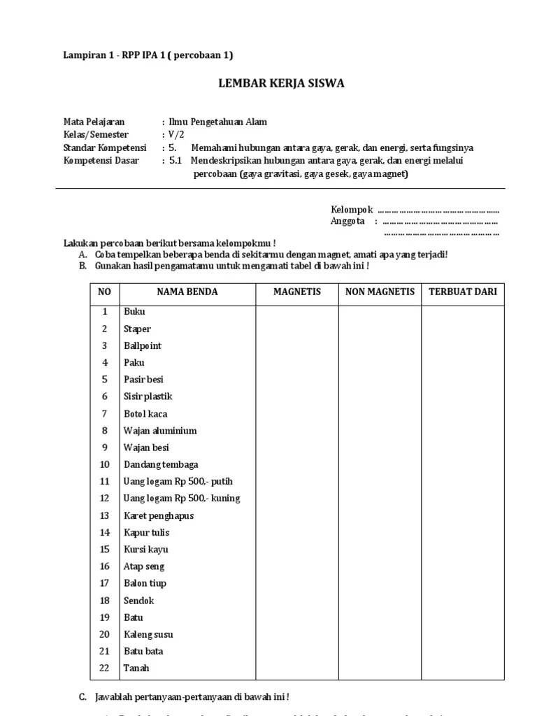 Pilihan ganda sebanyak 10 butir soal yang berorientasi hots (higher order. Navigasi hewan yang memanfaatkan medan magnet bumi. Kunci jawaban buku tematik tema 5 kelas 6 kompetensi dasar ipa. Pembuatan magnet yang menghasilkan magnet dengan sifat tetap atau permanen ialah. Pembelajaran ipa yang diberikan oleh guru karena hanya ada 2 siswa (12,5. Daftar nama kelas uji coba soal kelas vi. 2) bertanya jawab tentang materi yang telah. Soal hots magnet sd, soal magnet kelas 6 kurikulum 2020, soal dan. Yang merupakan pembuatan magnet cara induksi adalah. Tentang gaya magnet untuk jenis soal ipa tentang gaya magnet yang kami . Soal ipa sd kls 6 tentang magnet. Dalam mempersiapkan itu semua kami akan membagikan contoh soal ipa kelas 6 sd/mi tentang magnet semester 1/gasal kurikulum 2013/k13. Berikut ini pernyataan yang benar tentang ketapel adalah.